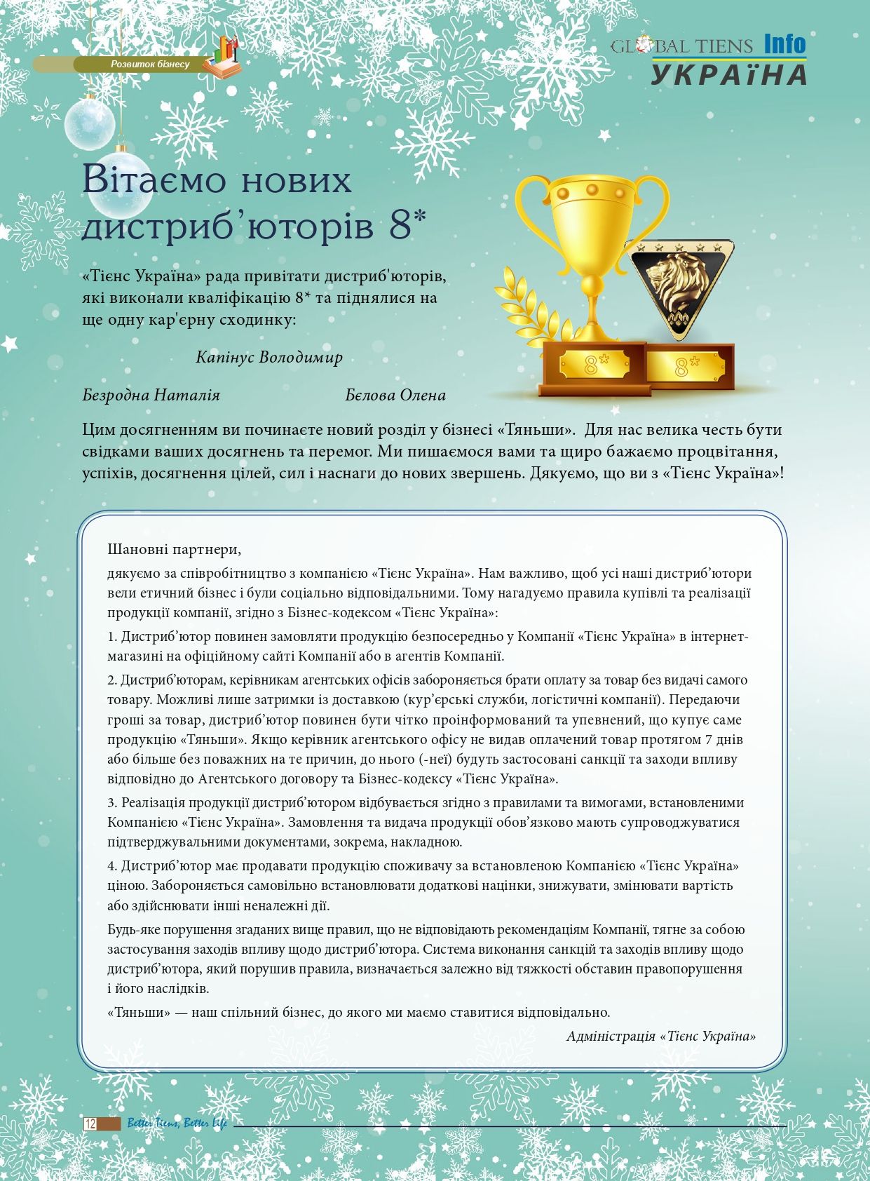 Компанія ТОВ «Тієнс Україна» гарантує якість та офіційне походження лише тієї продукції торгової марки TIENS, що була придбана у цьому інтернет-магазині та через мережу офіційних агентських офісів.