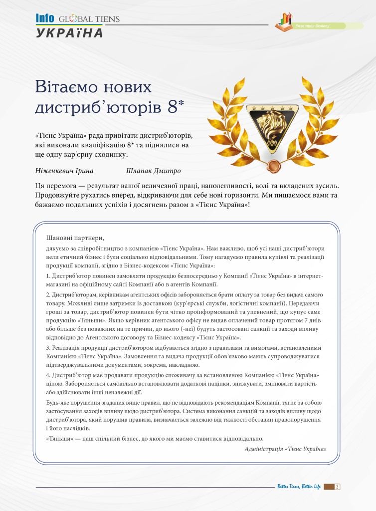 Компанія ТОВ «Тієнс Україна» гарантує якість та офіційне походження лише тієї продукції торгової марки TIENS, що була придбана у цьому інтернет-магазині та через мережу офіційних агентських офісів.