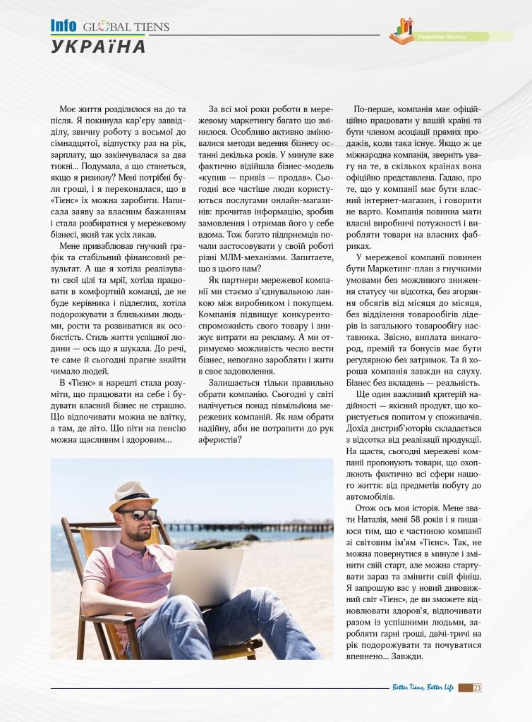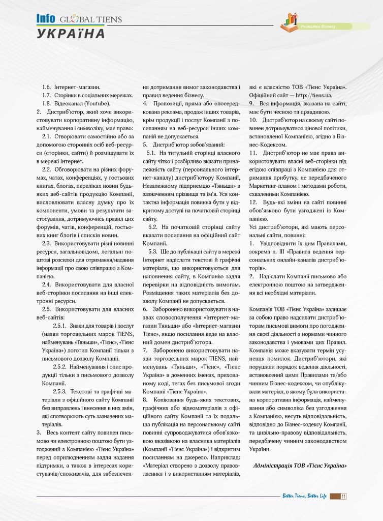 Компанія ТОВ «Тієнс Україна» реалізує продукцію в Україні безпосередньо через цей інтернет-магазин, через мережу агентів, що мають укладений з компанією агентський договір, та дистриб’юторів.